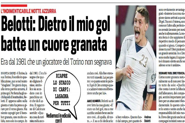 "A Torino, la sua Torino, l’esordio in qualificazione, pur se nel teatro “sbagliato”. Tre giorni dopo, alla terza partita azzurra,...