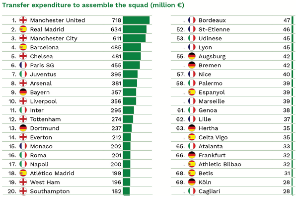Il "Cies" osservatorio del calcio internazionale ha stilato una classifica in base al valore delle squadre di calcio. La rosa...