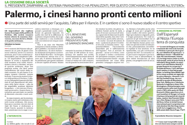 "I contorni del Palermo alla pechinese da un paio di giorni sono meno nebulosi, anche se il mistero permane, anzi...