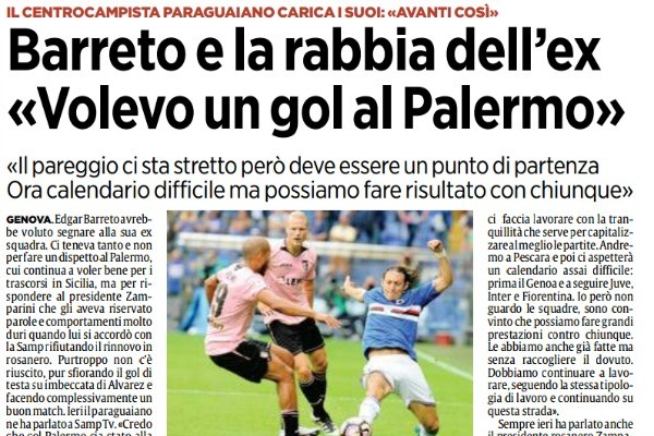 "Edgar Barreto avrebbe voluto segnare alla sua ex squadra. Ci teneva tanto e non per fare un dispetto al Palermo,...