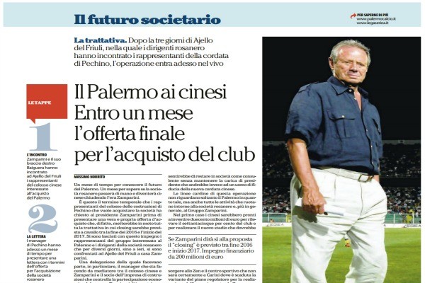 "Il Palermo dagli occhi a mandorla potrebbe a quel punto puntare con maggiore convinzione i rinforzi che gli servono sul...