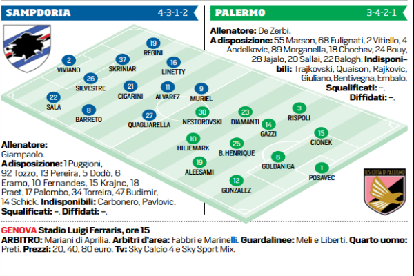 Sampdoria-Palermo è una sfida dal sapore di salvezza. I blucerchiati provengono da quattro sconfitte consecutive ed hanno 6 punti in...