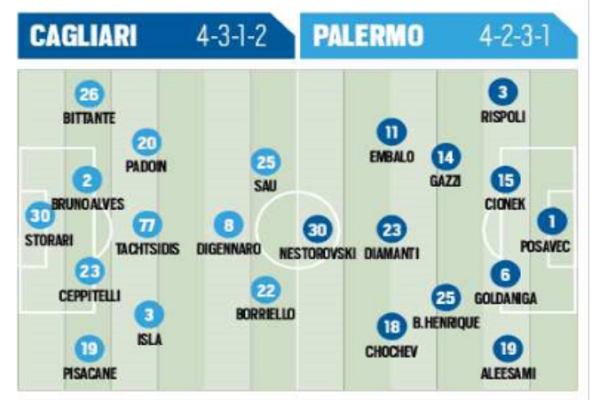 L'edizione odierna di "Tuttosport" ha stilato le probabili formazioni di Cagliari-Palermo in programma questa sera alle ore 21 al "Sant'Elia"....