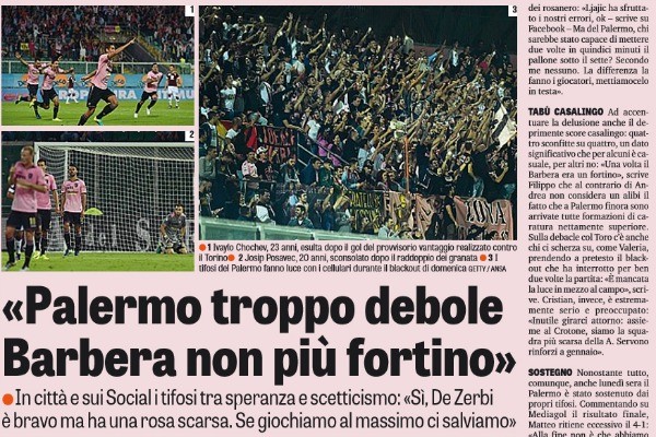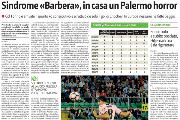 Giornale di Sicilia: “Sindrome «Barbera» in casa un Palermo horror”