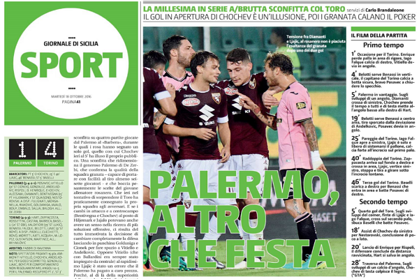 Giornale di Sicilia: “Maglie speciali e tanto entusiasmo per la millesima gara in A, poi la tempesta granata”