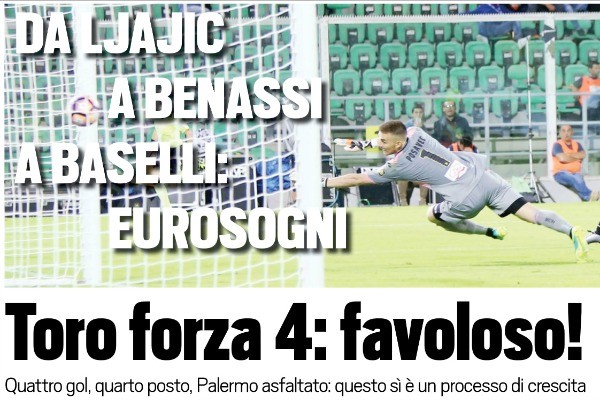 L'edizione odirna di "Tuttosport" ha stilato le pagelle di Palermo-Torino. Ecco le valutazioni: "POSAVEC 5.5 Al 4' frena Benassi, poi...