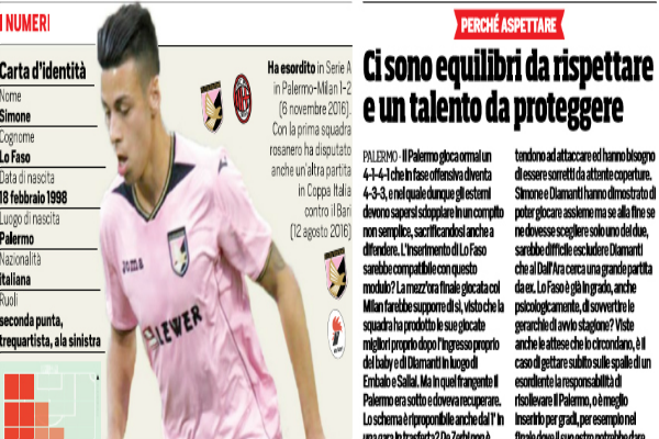 "Il Palermo gioca ormai un 4-1-4-1 che in fase offensiva diventa 4-3-3, e nel quale dunque gli esterni devono sapersi...