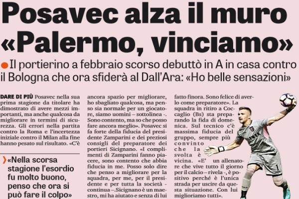 "L’avversario che l’ha tenuto a battesimo in Serie A, adesso sarà quello da battere. Josip Posavec pensa al Bologna e...
