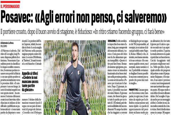 "«Il Palermo si salverà». Dal ritiro di Coccaglio, Josip Posavec dispensa pillole di ottimismo. Nonostante il penultimo posto in classifica...