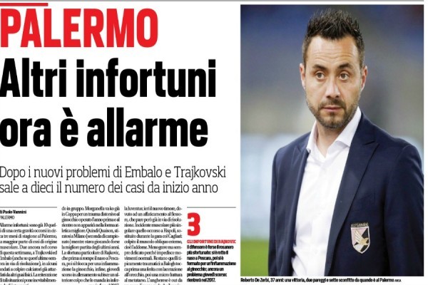 "Allarme infortuni: sono già 10 quelli di una certa gravità occorsi in circa tre mesi di stagione al Palermo, la...