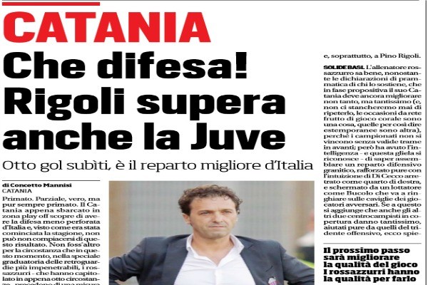 "Primato. Parziale, vero, ma pur sempre primato. Il Catania appena sbarcato in zona play off scopre di avere la difesa...
