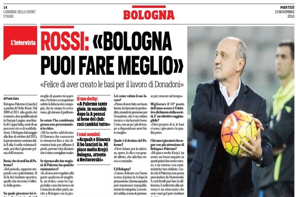 "Bologna-Palermo è (anche) a partita di Delio Rossi. Dal 2009 al 2011 alla guida dei rosanero, due qualificazioni in Europa...