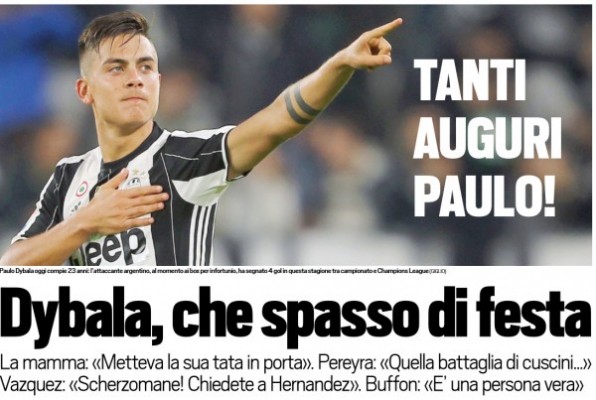L'edizione odierna di "Tuttosport" ha realizzato uno speciale dedicato a Pualo Dybala che oggi compie 23 anni. Ecco quanto si...