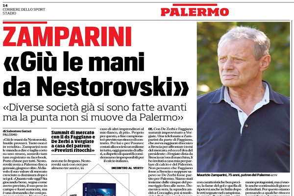"«Giù le mani da Nestorovski. Inutile provarci. Tanto non è in vendita». Zamparini non le manda a dire e taglia...