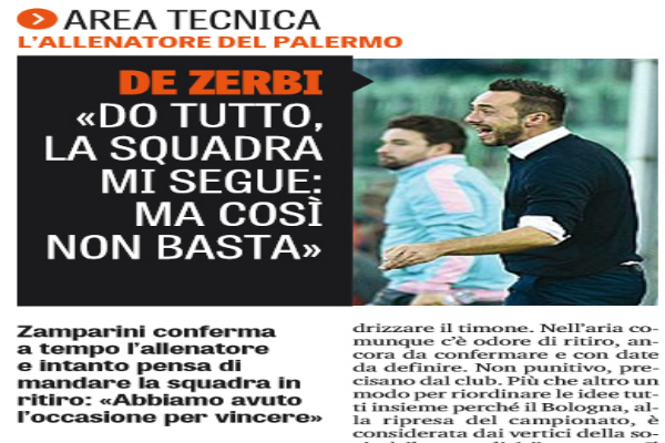 "Con due settimane a disposizione prima della prossima partita di campionato, la trasferta di Bologna del 20 novembre, il Palermo...