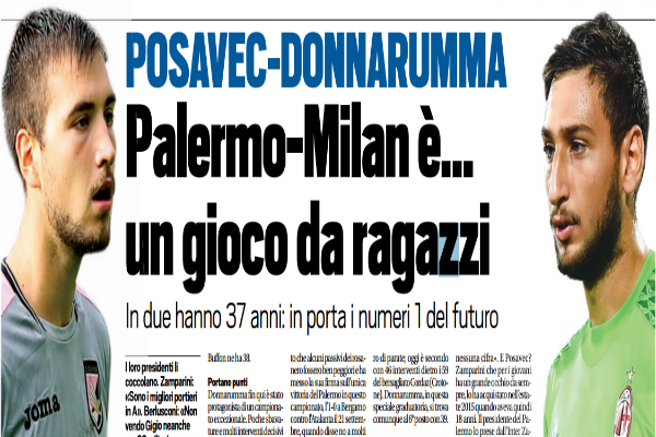 "Domani pomeriggio al "Barbera" ci sarà una sfida nella sfida, quella fra i due portieri più giovani della Serie A....