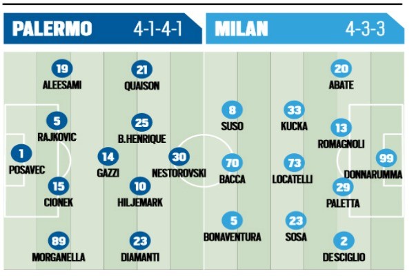 Giornale di Sicilia: “Palermo-Milan, linea verde in porta. Posavec-Donnarumma, la meglio gioventù”