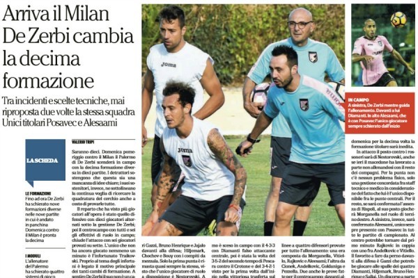 "Saranno dieci. Domenica pomeriggio contro il Milan il Palermo di De Zerbi scenderà in campo con la decima formazione diversa...
