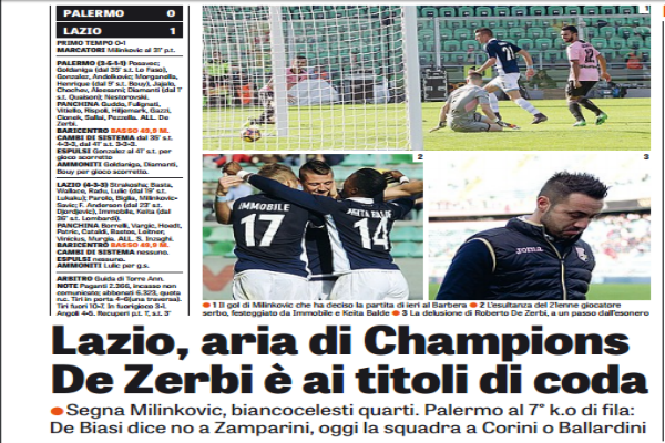 "Aspettando i cieli d’Europa, la Lazio vola già ad altezze impressionanti in Italia. L’aquila biancoceleste sorvola senza danni quel «Triangolo...