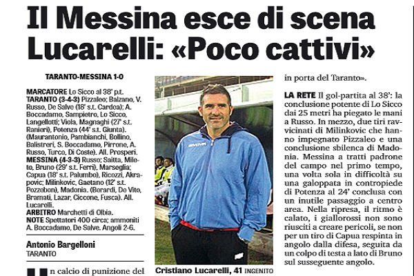 "Un calcio di punizione del palermitano Lo Sicco condanna il Messina all’uscita dalla Coppa Italia al termine di una gara...
