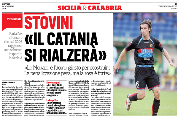 "Lorenzo Stovini ha vissuto alcune tra le stagioni migliori del Catania in Serie A. Tre anni intensi, dal 2006 al...