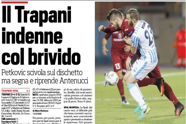 "Un punto per parte, positivo per la Spal meno per il Trapani che resta all'ultimo posto. Nella prima mezz'ora, il...