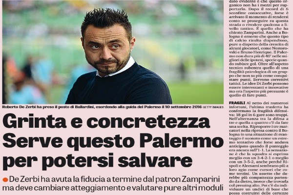 "Troppo fioretto, poca sciabola. Da oggi De Zerbi che ieri ha avuto la fiducia a tempo da Zamparini, dovrà usare...