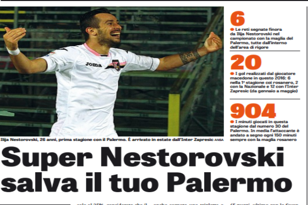 "Il Palermo si affida a Ilija Nestorovski. Non solo perché al momento il macedone è l’unico terminale offensivo a disposizione...