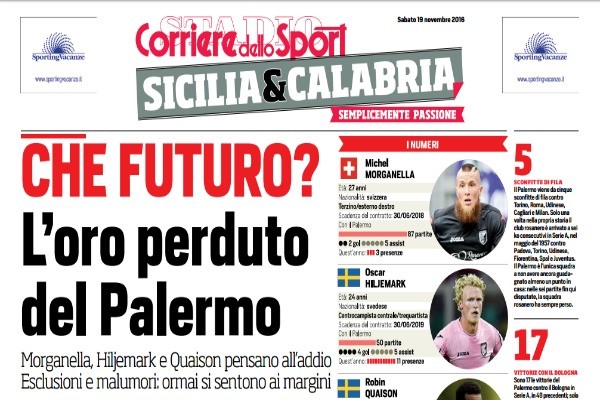 Corriere dello Sport: “Ormai i pensieri di Hiljemark sono altrove. E Zamparini non vuole trattenerlo”