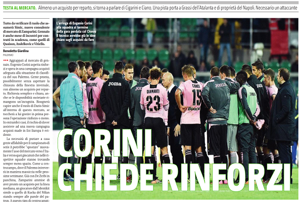 “È a centrocampo che Palermo interverrà in maniera massiccia nelle prossime settimane. Già con De Zerbi in panchina, Zamparini ammise...