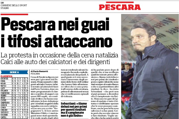 "Cena di Natale indigesta ieri sera per i giocatori del Pescara. I biancazzurri e i dirigenti adriatici hanno infatti trovato...