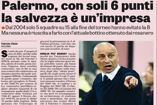 "Continua la corsa in contromano del Palermo verso i record meno lusinghieri della serie A. Record storici, come quello delle...