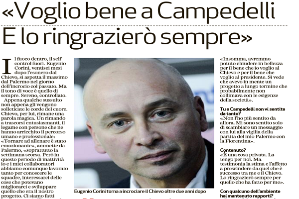 L’edizione odierna de “L’Arena di Verona” ha realizzato un’intervista al neo-tecnico rosanero Eugenio Corini. Ecco un estratto: “Torniamo indietro di...