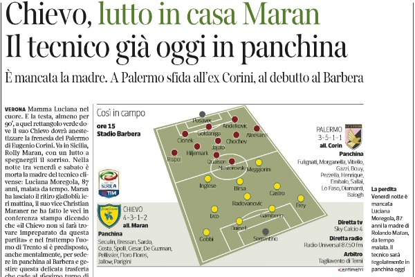 "Mamma Luciana nel cuore. E la testa, almeno per 90’, a quel rettangolo verde dove il suo Chievo dovrà anestetizzare...
