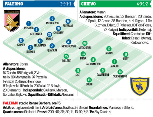 L'edizione odierna de "Il Corriere dello Sport" ha stilato le probabili formazioni del match in programma oggi al "Barbera" tra...