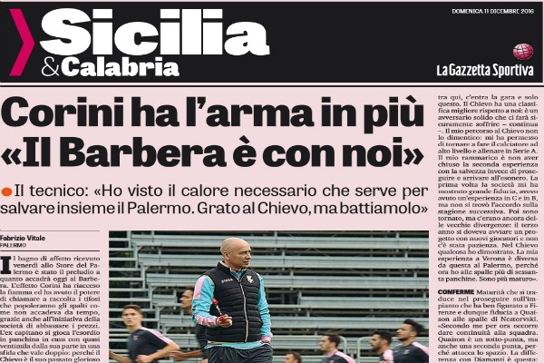L'edizione odierna de "La Gazzetta dello Sport" ha stilato le probabili formazioni di Palermo-Chievo, in programma oggi alle 15 al...