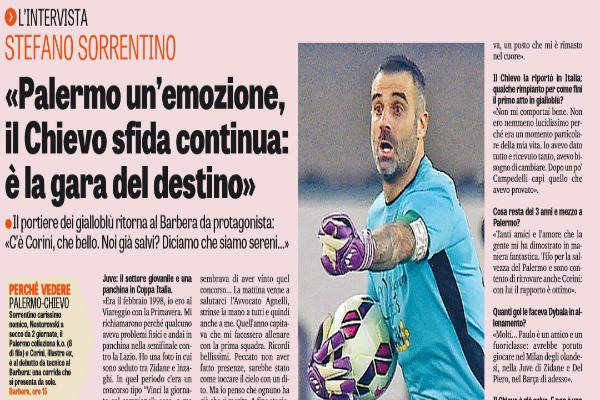 "La Serie A celebra oggi la giornata di Stefano Sorrentino: si giocano Palermo-Chievo, per ovvi motivi la «sua» partita, e...