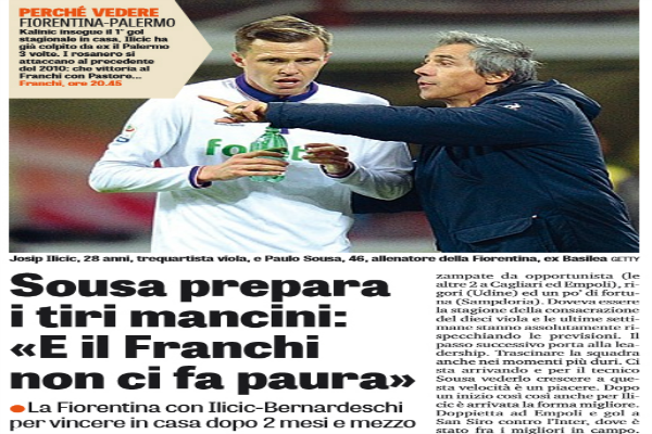 Gazzetta dello Sport: “Sousa prepara i tiri mancini: «E il Franchi non ci fa paura»”