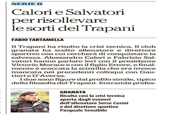 "Il Trapani ha risolto la crisi tecnica. Il club granata ha scelto allenatore e direttore sportivo con cui cercherà di...