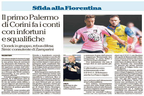 Repubblica: “Il primo Palermo di Corini fa i conti con infortuni e squalifiche. Rebus difesa…”