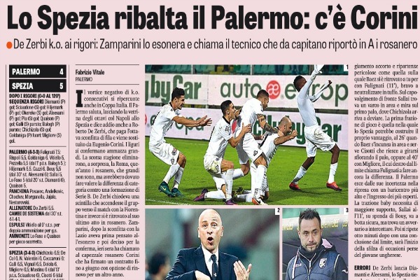 L'edizione odierna de "Il Corriere dello Sport" ha stilato le pagelle di Palermo-Spezia. Di seguito le valutazioni dei rosanero: Fulignati...