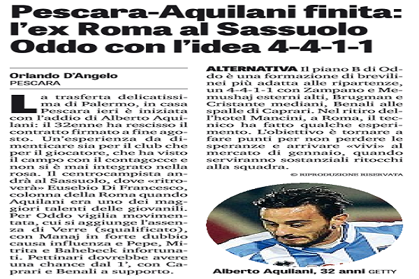 "La trasferta delicatissima di Palermo, in casa Pescara ieri è iniziata con l’addio di Alberto Aquilani: il 32enne ha rescisso...