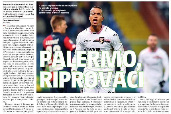L’edizione odierna de “Il Giornale di Sicilia” ha stilato le probabili formazioni di Palermo-Pescara, gara valida per la 18^ giornata...