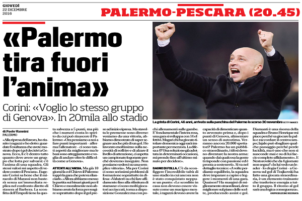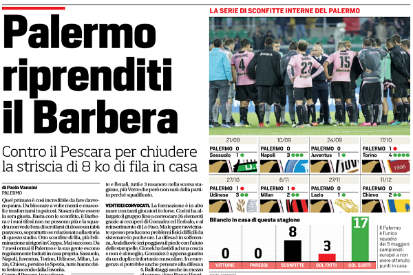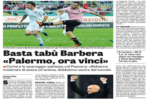 Gazzetta dello Sport: “Basta tabù Barbera: «Palermo, ora vinci»”