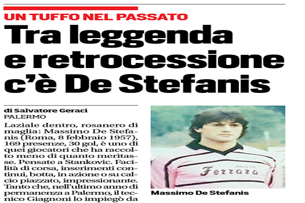 "Laziale dentro, rosanero di maglia: Massimo De Stefanis (Roma, 8 febbraio 1957), 169 presenze, 30 gol, è uno di quei...