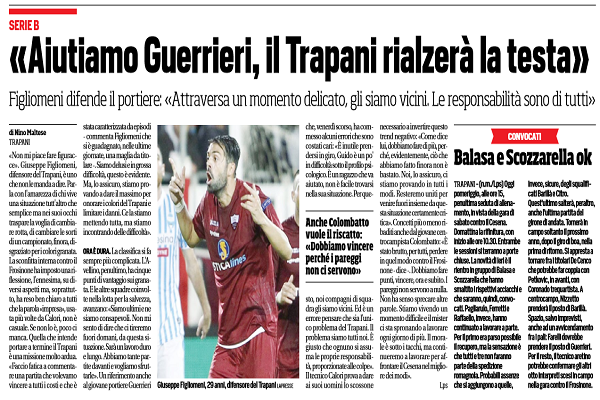 "«Non mi piace fare figuracce». Giuseppe Figliomeni, difensore del Trapani, è uno che non le manda a dire. Parla con...