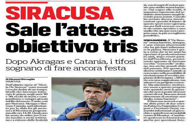 "Ecco l'esame derby in trasferta per il Messina contro lo specialista Siracusa, che, a parte la gara d'andata persa 3-1...