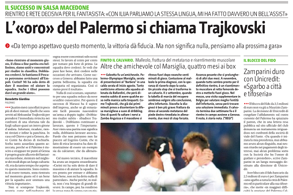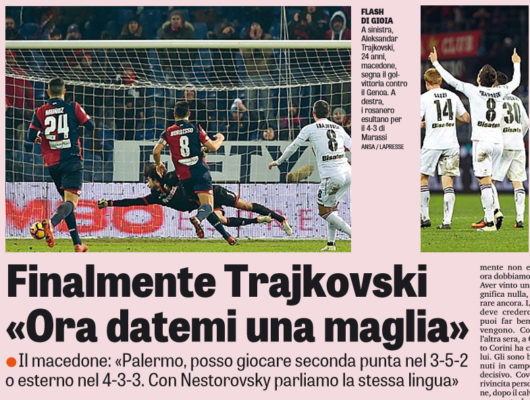 Giornale di Sicilia: “L’oro del Palermo si chiama Trajkovski”
