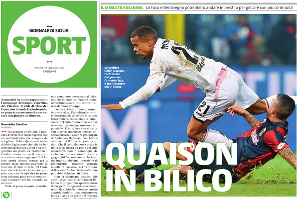 "Tra acquisti e cessioni, il mercato del Palermo sta per aprirsi con un nodo tutt'altro che semplice da sciogliere. Robin...