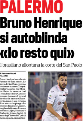 "Bruno Henrique ha scelto: «A Palermo sto bene e resto». Le sirene del San Paulo possono continuare a cantare. LA SCELTA...